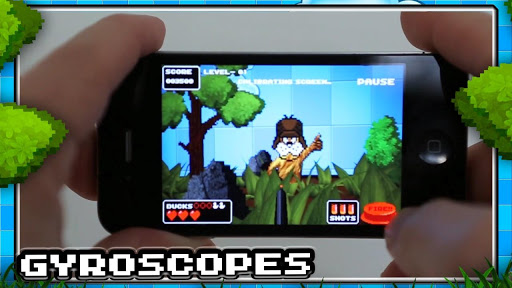 Teraz mamy możliwość pogrania w kaczki teraz, na naszym smartfonie. Niestety pistoletu nie dostaniemy. Poradzić sobie można jednak inaczej. Pierwszy sposób to dotyk. Gra wykonana jest w trójwymiarze, więc kompletnie inaczej niż w przypadku oryginału. Standardowo krzaczki oraz wylatujące z nich ptaki. Przesuwając palcem po ekranie sterujemy bronią.
