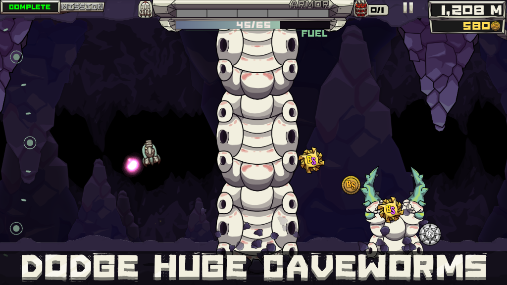 Jak zapewne już wiecie ze screena powyżej, celem gracza jest sterowanie mała rakietą w przestrzeni pełnej niebezpiecznych, kamiennych nasypów wystających zarówno z góry, jak i z dołu.