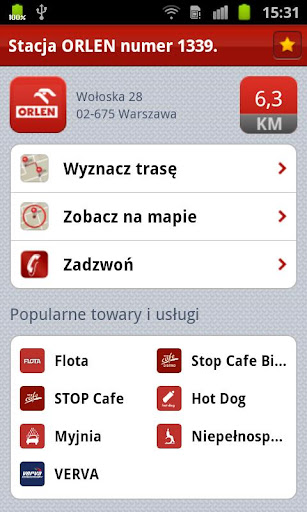 Tak, jak wspomnieliśmy, aplikacja od ORLENU udostępnia całkiem sporo informacji o punktach sprzedaży paliwa. Oznacza to, że możemy uzyskać w niej, na przykład, informacje na temat tego, czy dana stacja obsługuje karty Flota, czy można na niej coś zjeść albo czy znajduje się w niej miejsce przeznaczone do przewijania dzieci. Gdybyśmy nie do końca wierzyli danym z programu, zawsze wykonać możemy na daną stację telefon. Co ciekawe, zrobić to można bezpośrednio z poziomu aplikacji bez konieczności zapisywania czy kopiowania numeru.