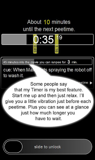 Przeglądając ostatnio Android Market, natrafiliśmy na bardzo ciekawą aplikację, która z pewnością zainteresuje stałych bywalców kin. „RunPee”, bo właśnie tak nazywa się znaleziony przez nas program, oferuje nam pomoc w znalezieniu odpowiedniego momentu do wyjścia do toalety w trakcie seansu, a nawet streści nieoglądany przez nas fragment filmu.