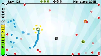 Co jest więc naszym celem w grze? To proste – wystarczy przetrwać. Sterujemy białą kulką. Wszystko to odbywa się za pomocą akcelerometru. Spotkanie z czerwoną kropką zabija nas i kończy się znanym wszystkim napisem – GAME OVER. Atakujący będą przemieszczać się w naszą stronę utrudniając nam poruszanie się. Musimy używać przemieszczających się po mapie powerupów, które pomogą nam w pokonaniu naszych przeciwników czy też ochronie siebie. Do dyspozycji mamy wybuchy niszczące okoliczne kropki, możliwość strzelania do nich i kilka innych, które pozwolą nam na przetrwanie. Nie możemy oczywiście zdradzić wszystkiego. U góry ekranu wyświetlany jest najwyższy osiągnięty wynik oraz aktualnie używane powerupy. Z czasem na ekranie pojawia się coraz więcej przeciwników. W pewnym momencie gra staje się niesamowitym wyzwaniem, gdyż dzieje się bardzo, bardzo dużo. Po lewej mamy pasek, który oznacza nam serie zdobywanych punktów, a to pozwala nam na zdobywanie ich jeszcze więcej. Dostępne są 3 poziomy trudności, które umożliwiają dostosowanie gry do naszych możliwości. Polecam jednak zaczęcie od najłatwiejszego.